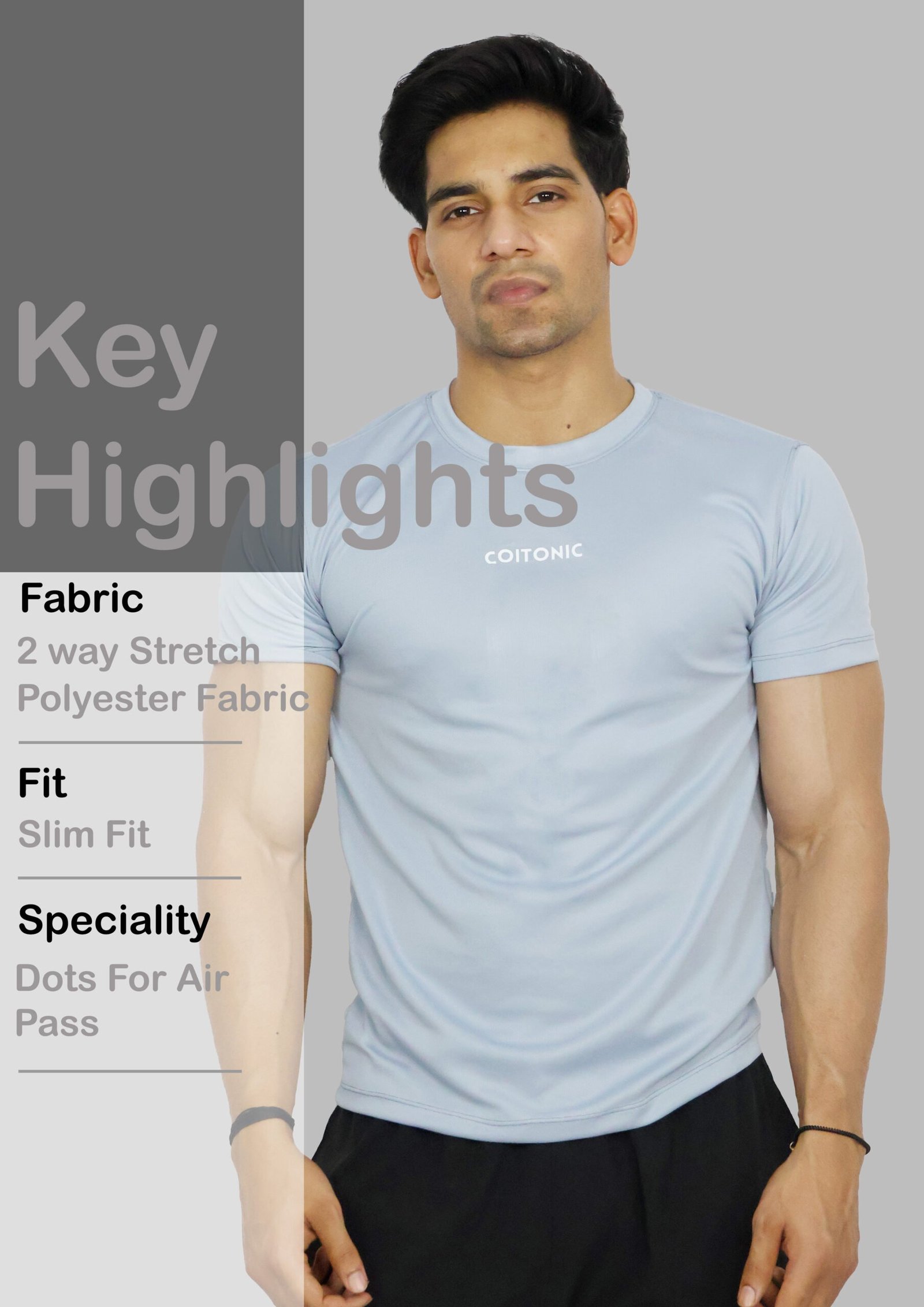 Coitonic Dry Technology: Integrated with Coitonic Dry technology, the fabric efficiently wicks away sweat from your skin. This feature helps maintain a dry and comfortable feeling even during high-intensity workouts, preventing the shirt from sticking to your body.