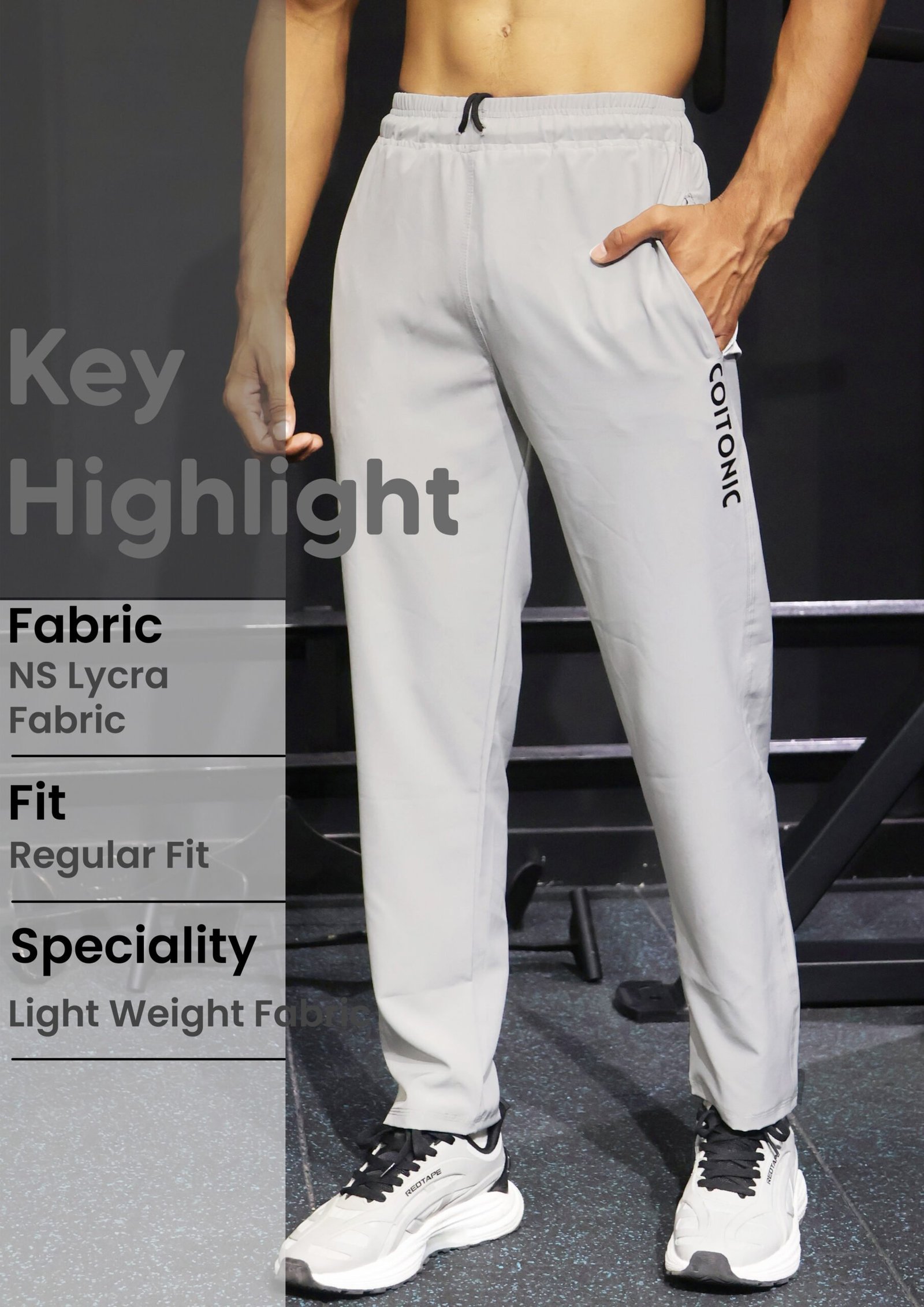 Classic Light Grey Color: The timeless Light Grey color of the Coitonic Slim Fit Track Pant makes it a versatile addition to any wardrobe. It easily pairs with a wide range of tops, from vibrant athletic
